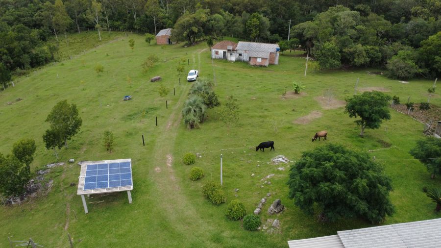 A área é totalmente cercada e conta ainda com energia fotovoltaica (8 placas) e gerador a diesel, garantindo autonomia e economia.